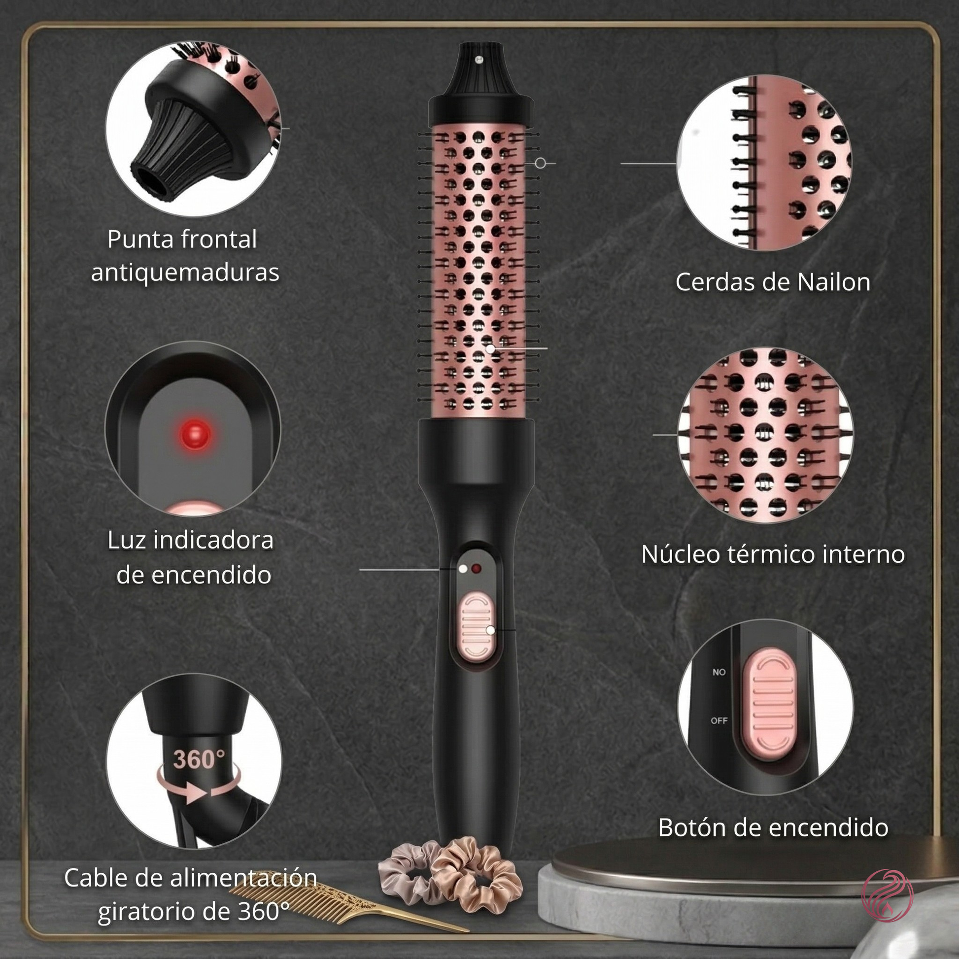 - ⚡ Cerdas suaves anti-enredos que permiten rizos y volumen sin tirones ni molestias.